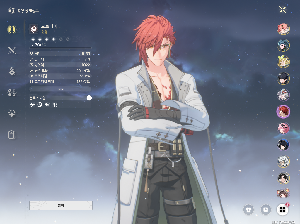 - 모르테피: 풀돌 + 공명 효율 4성 무기 + 스킬 1~2레벨