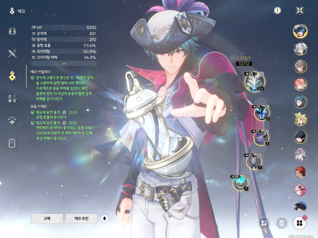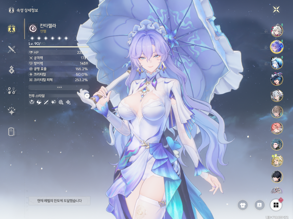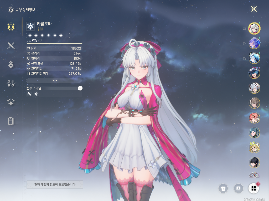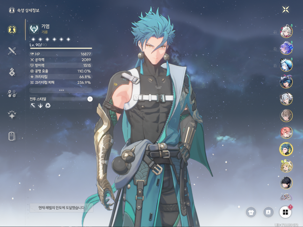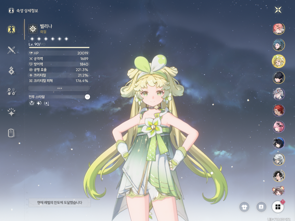 → 기염에게 강공격 버프를 주기 위해서만 사용하기 때문에 육성은 최소화하는게 좋습니다:) - 벨리나: 3돌 + 공명 효율 4성 무기 + 스킬 7레벨
