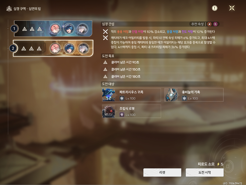 물론 내가 응결이나 전도 메인 딜러의 돌파가 잘 되어있다 하시는 분들은 충분히 클리어 가능합니다ㅋㅋㅋ