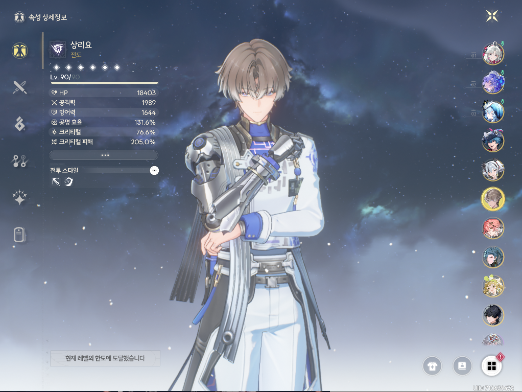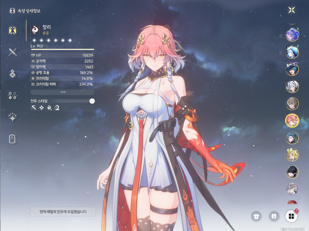 - 장리: 명함 + 5성 상시 무기 + 스킬 풀 10레벨