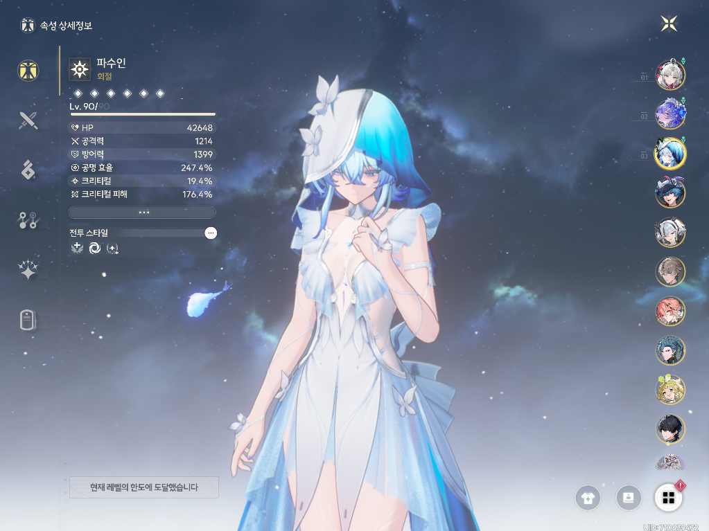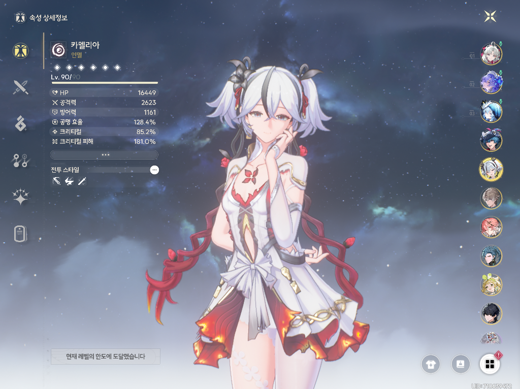 → 기염에게 강공격 버프를 주기 위해서만 사용하기 때문에 육성은 최소화하는게 좋습니다:) - 벨리나: 3돌 + 공명 효율 4성 무기 + 스킬 7레벨