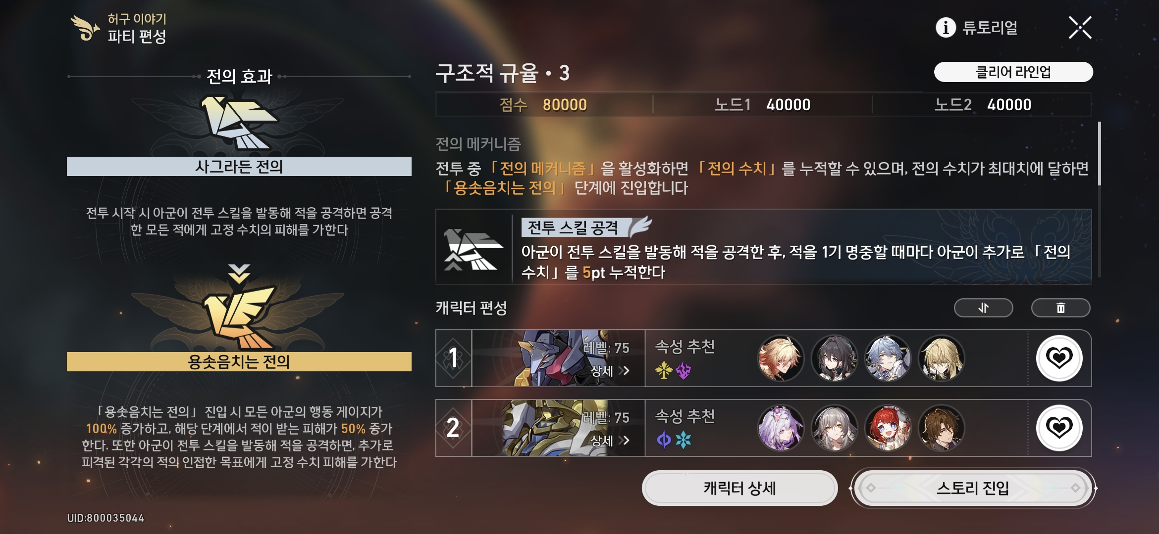 2파티는 마이데이, 카스토리스가 HP 기반 딜러이기 때문에 HP 관련 버프를 사용했습니다!