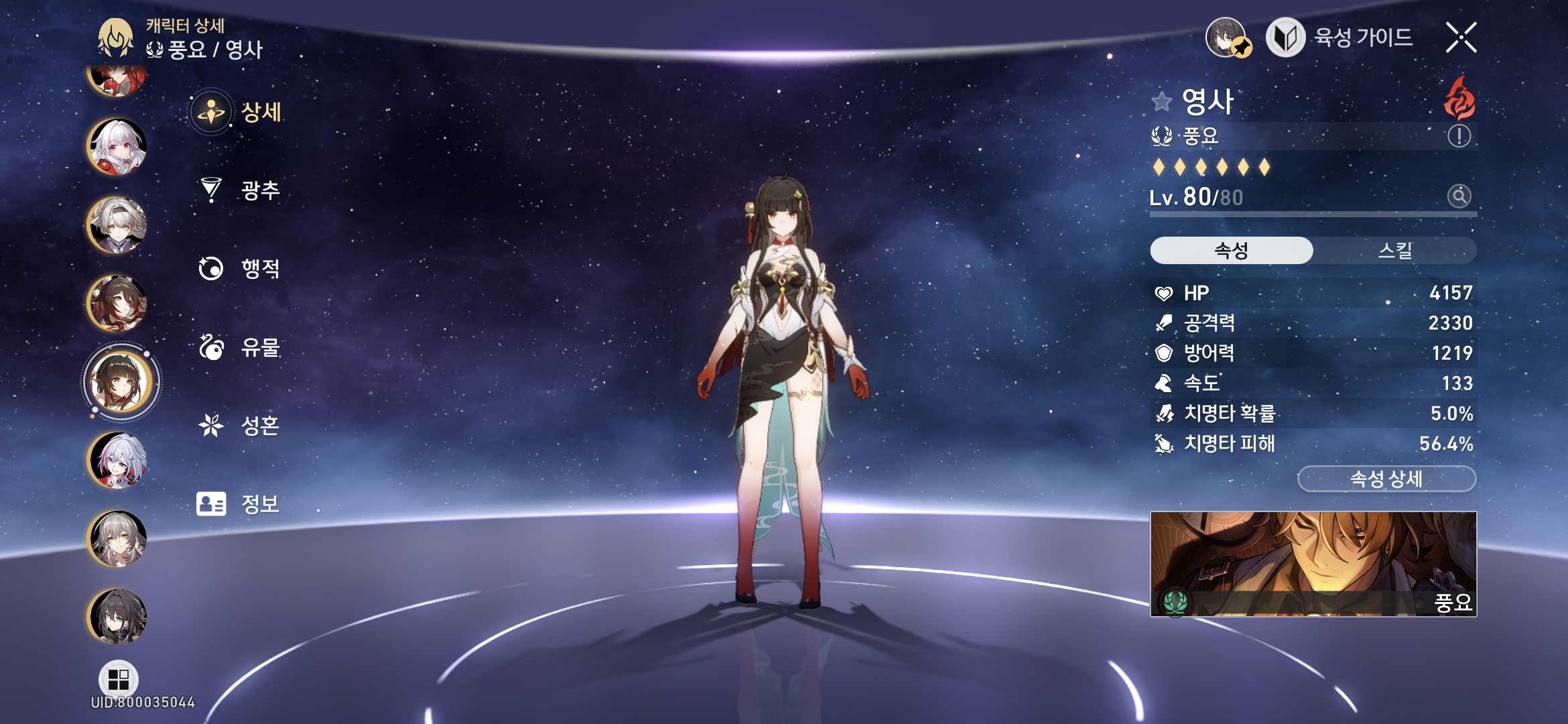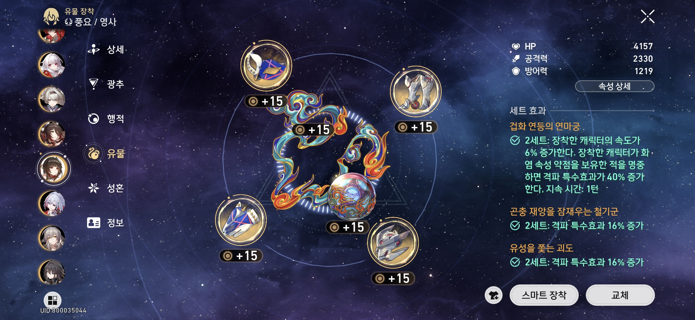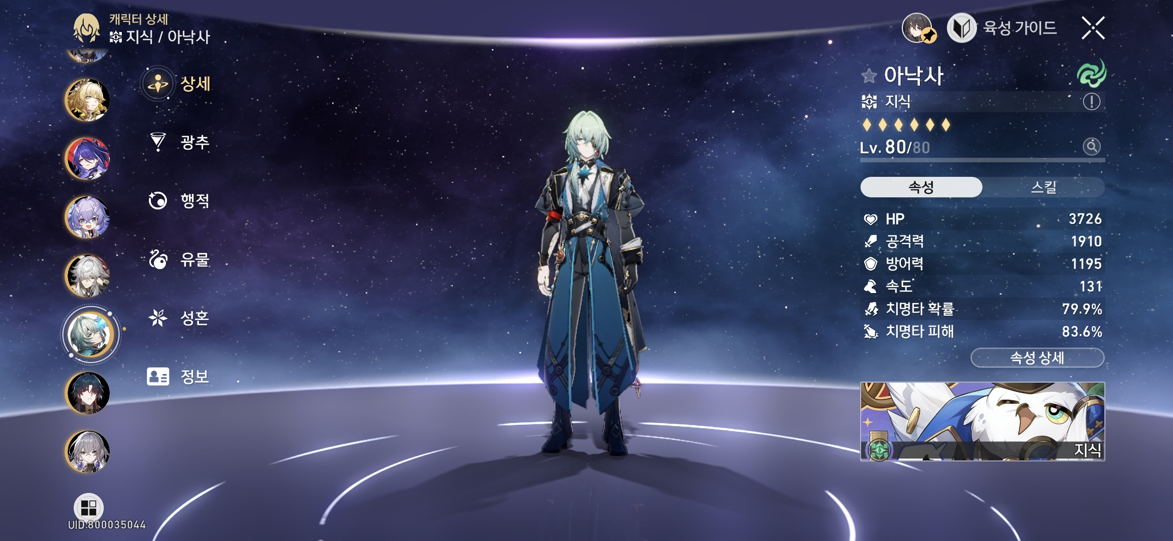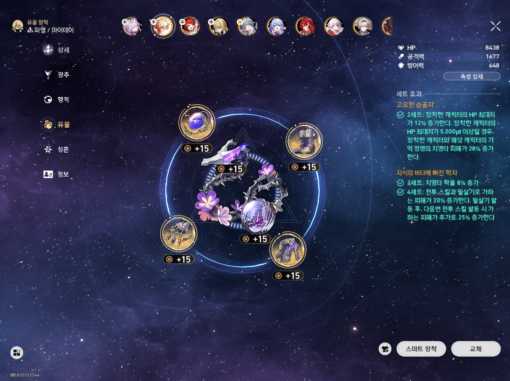 - 아낙사: 명함 / 대체 광추 (우주 대사업: 공격력 증가+약점 개수마다 가하는 피해 증가) / 8행적
