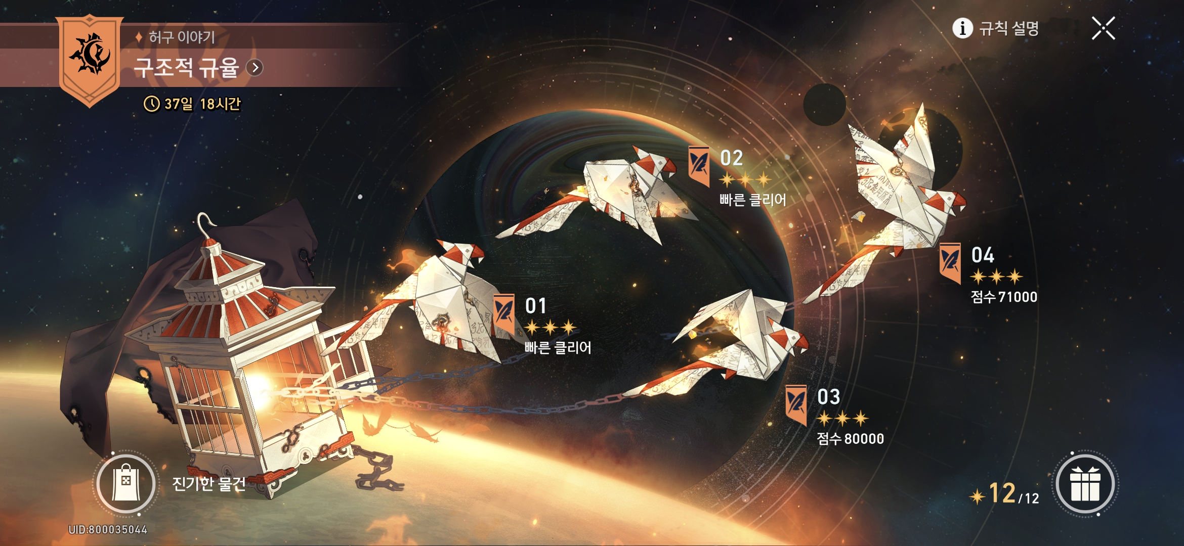 안녕하세요! 오늘은 3.2 버전에 오픈한 허구 이야기●구조적 규율 12별 클리어 조합 포스팅을 하도록 하겠습니다!