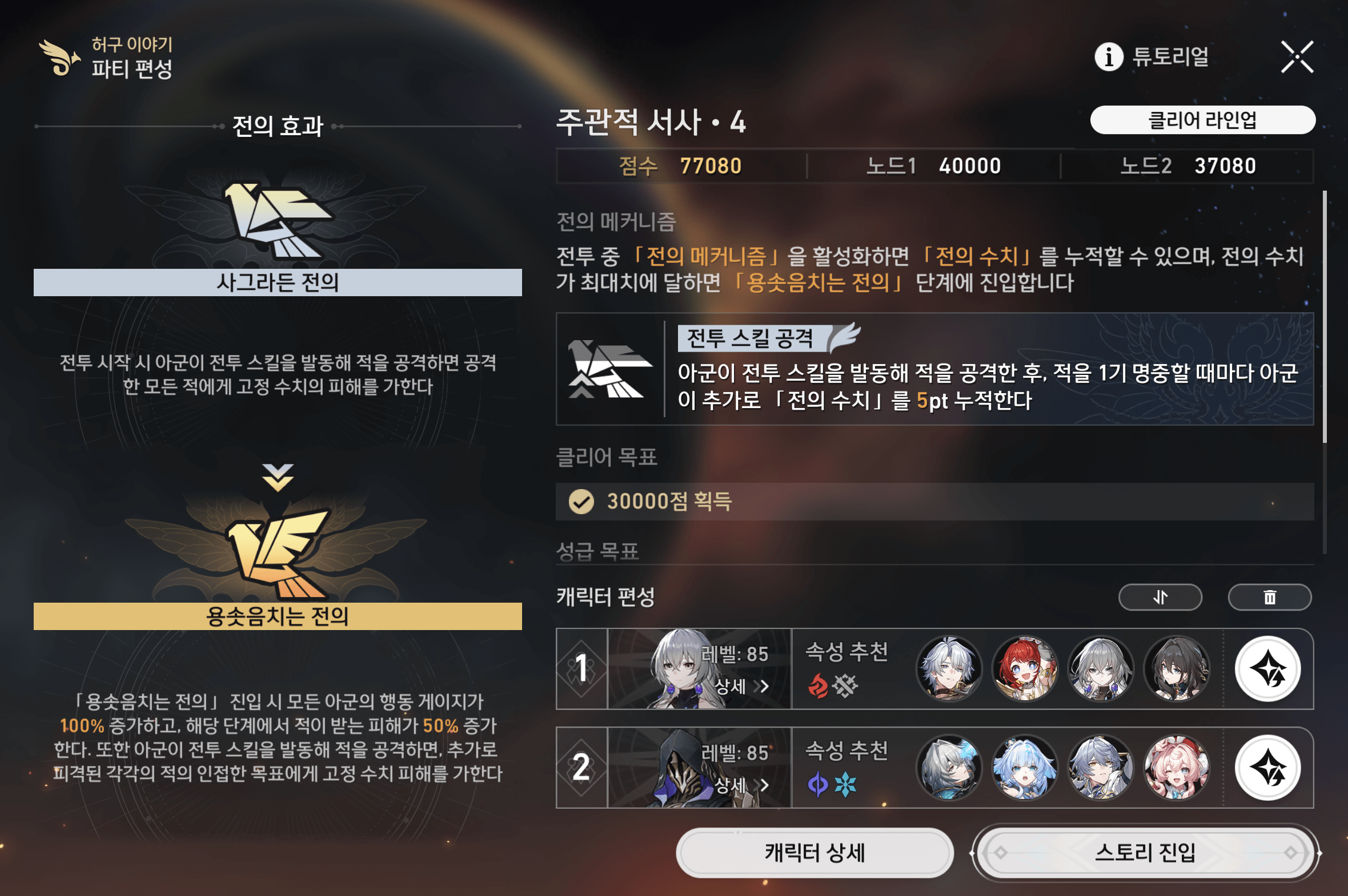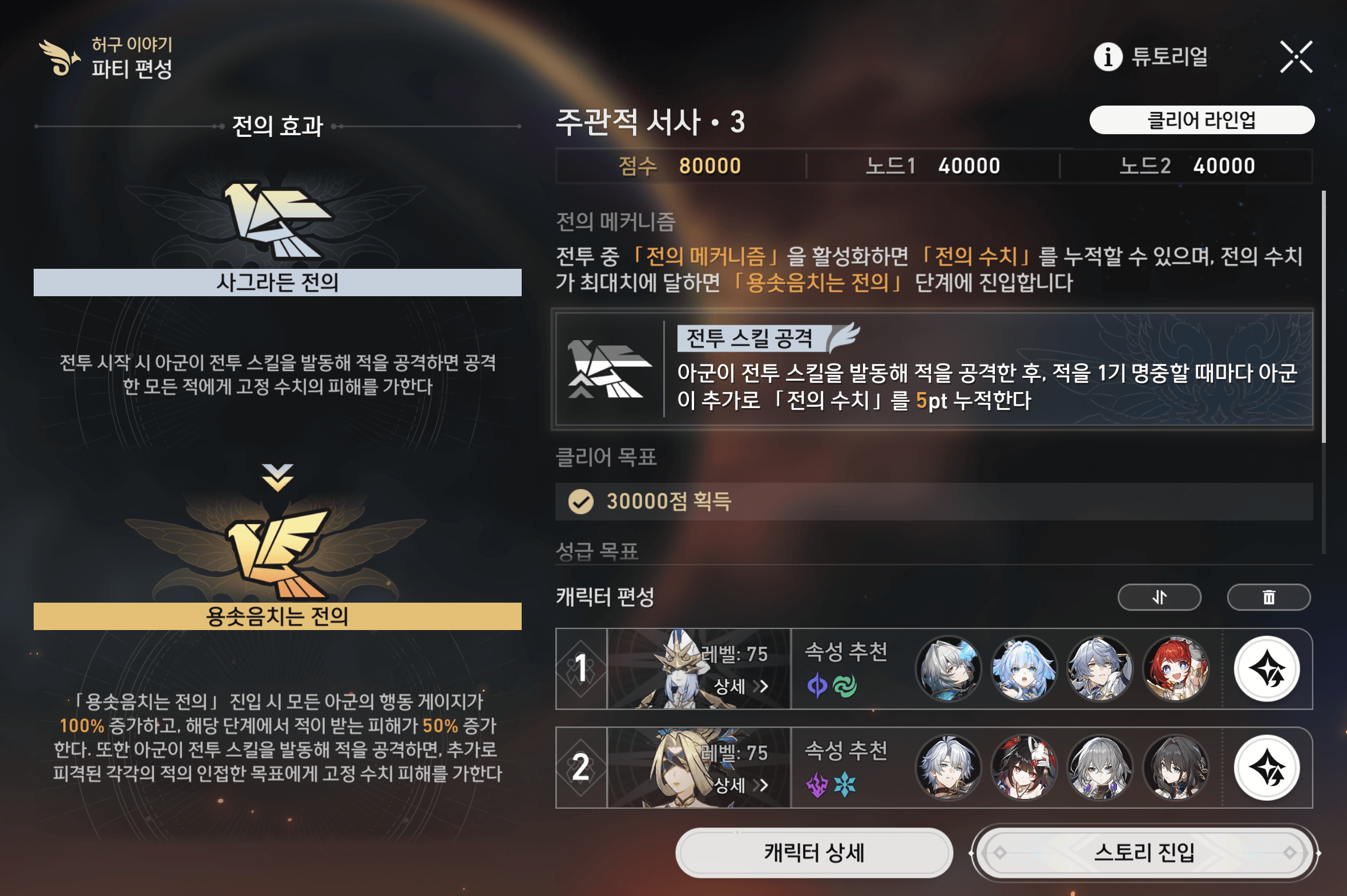 캐릭터 육성을 어느 정도 완료하신 분들은 쉽게 3별을 가져가실 수 있습니다:)