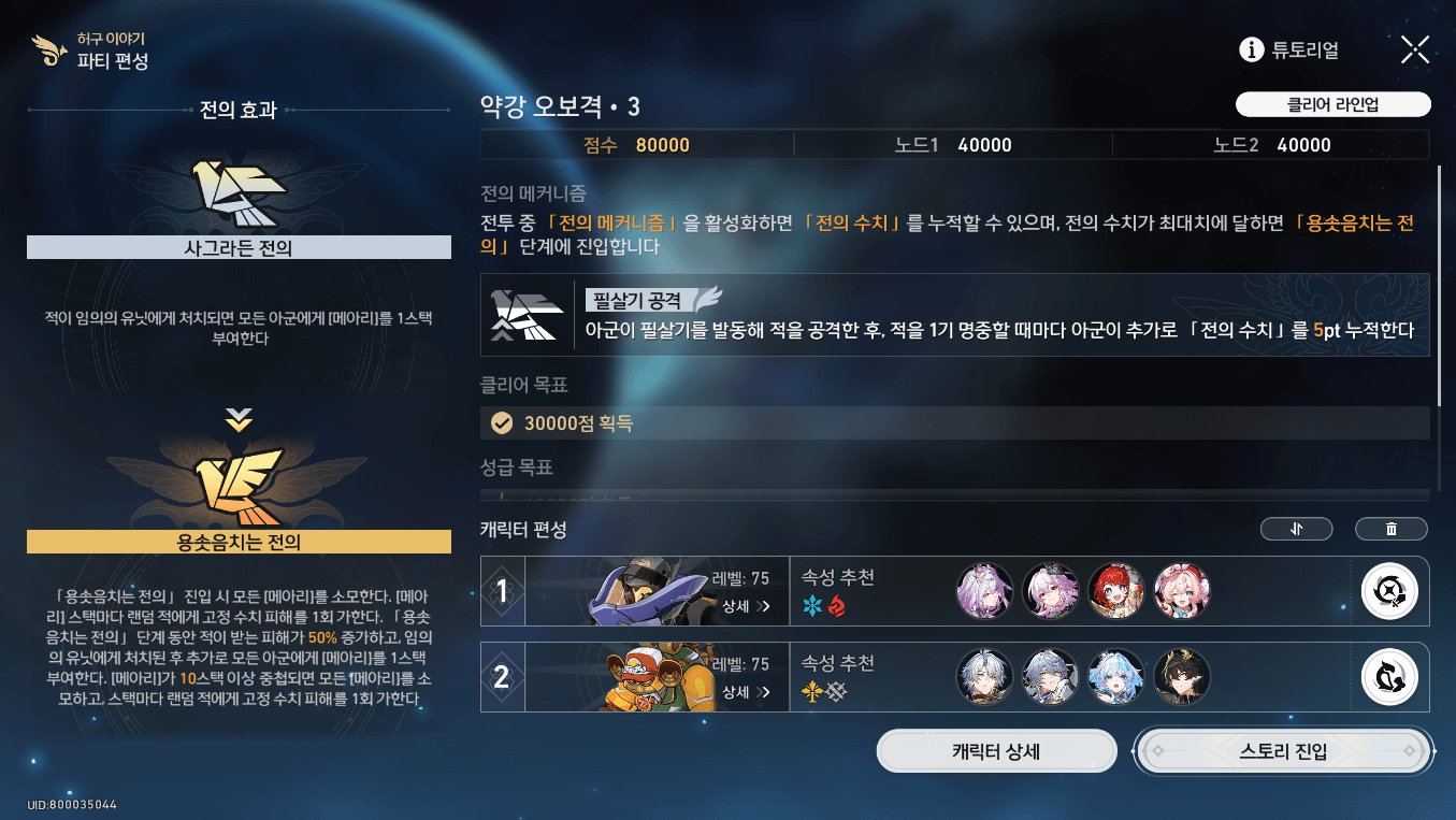3단계는 속성에 맞춰서 사용해주시면 되는데, 캐릭터 육성을 어느 정도 완료하신 분들은 쉽게 3별을 가져가실 수 있습니다:)