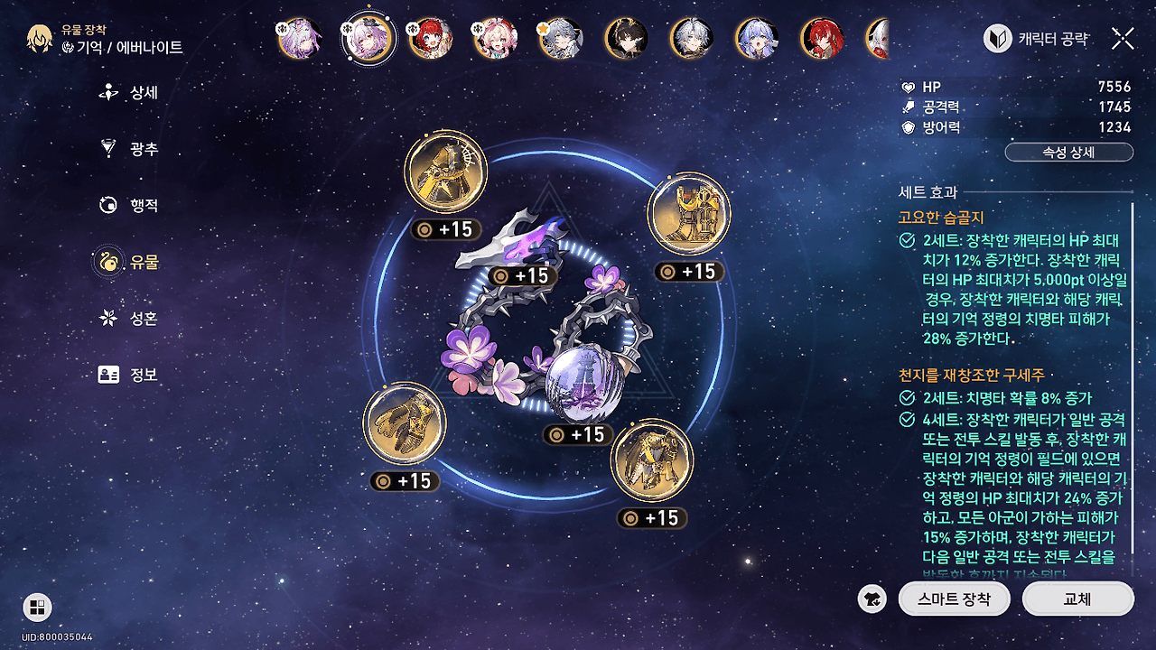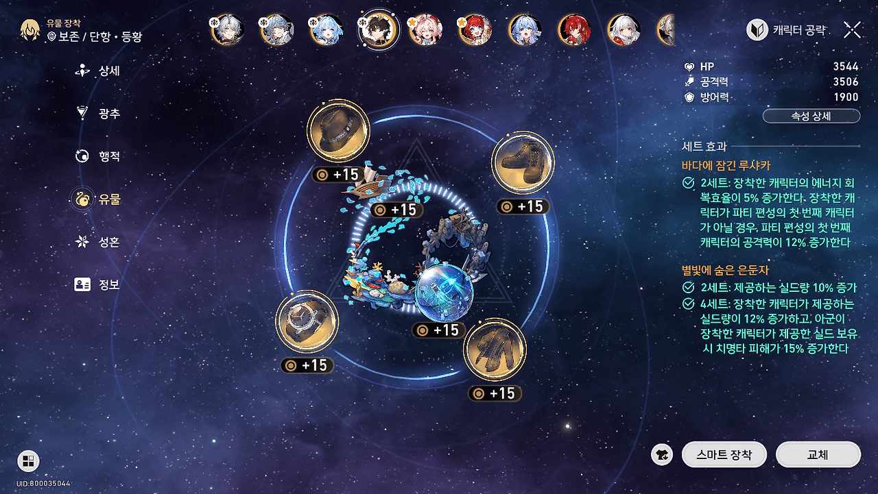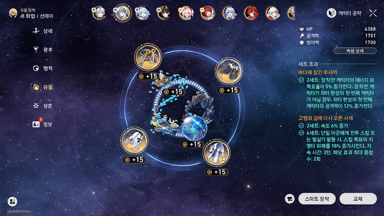 - 등황: 명함 / 대체 광추 (언제나 여정이 평탄하기를 : 실드량, 피해 증가) / 8행적