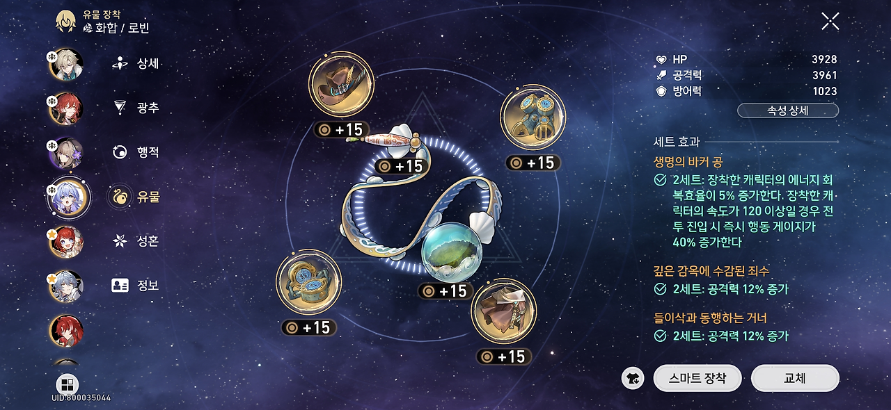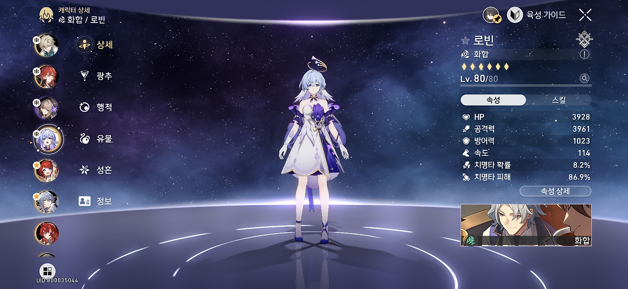 3. 로빈: 명함 / 대체 광추 (내일을 위한 여정: 공격력 증가+필살기 사용 후 가하는 피해 증가) / 10행적