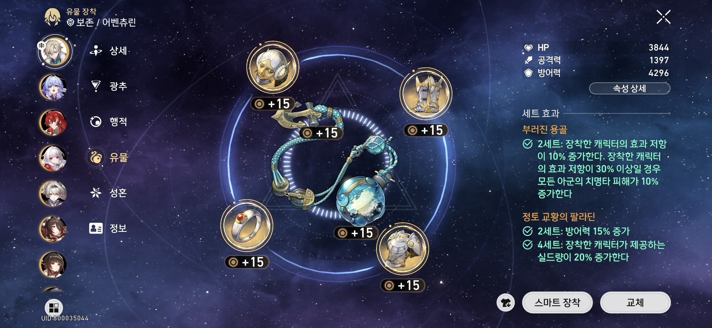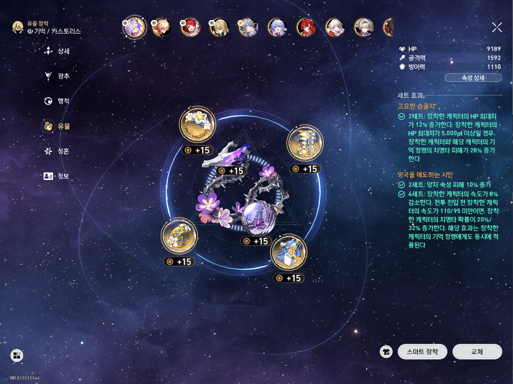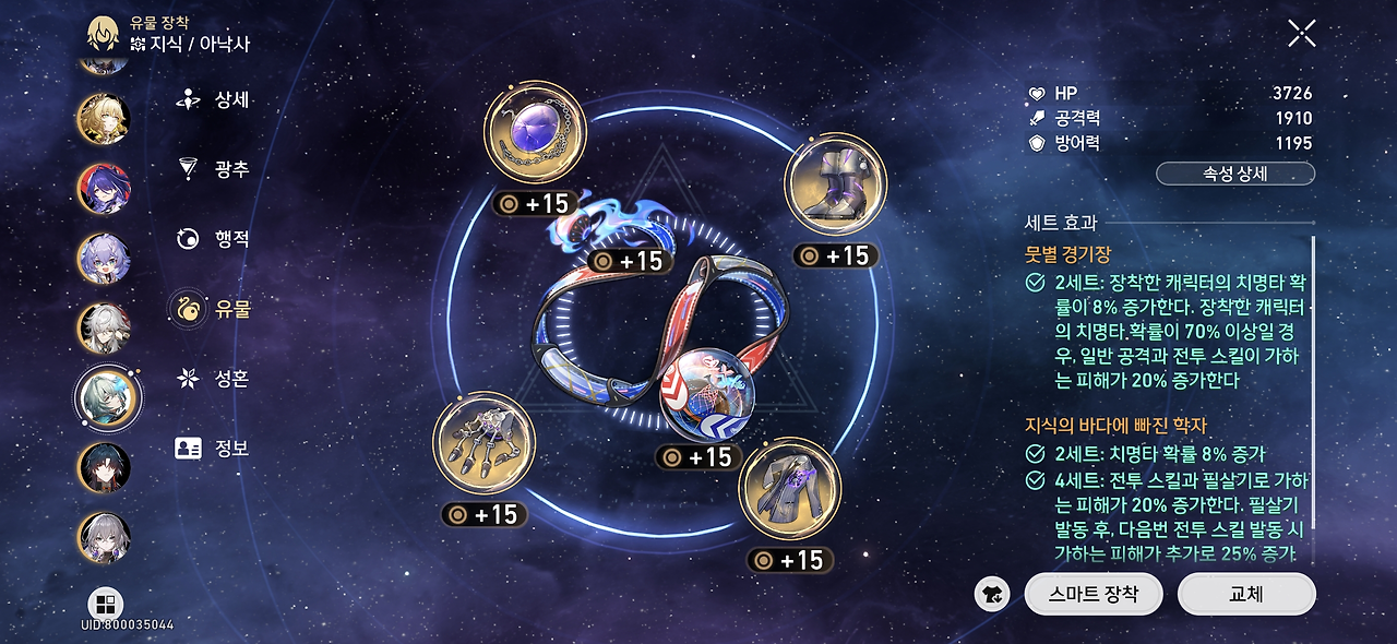 1. 아낙사: 명함 / 대체 광추 (우주 대사업: 공격력 증가+약점 개수마다 가하는 피해 증가) / 10행적