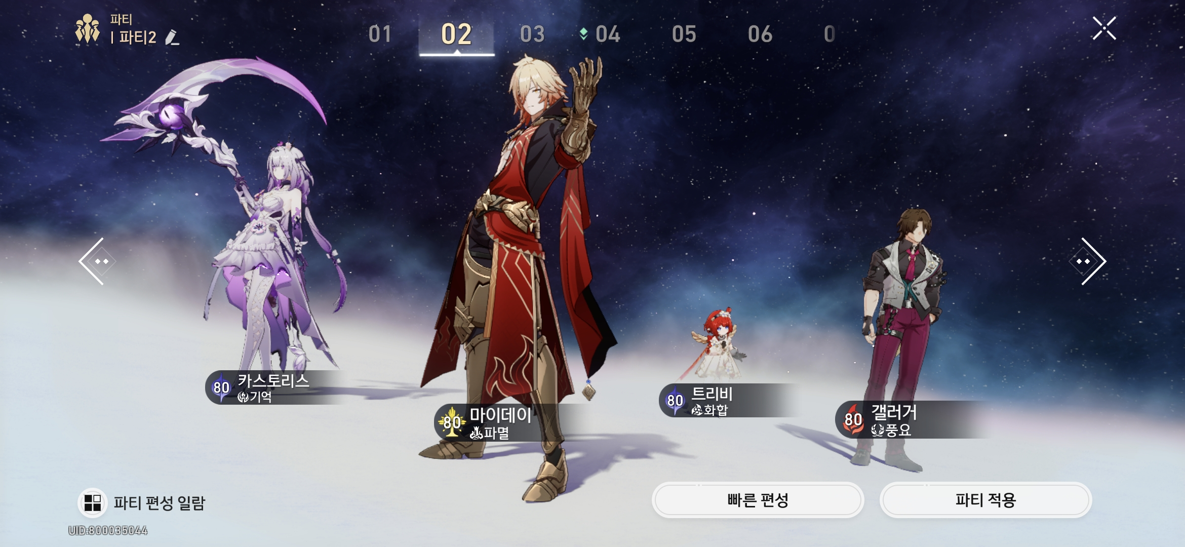 1파티는 카스토리스+마이데이+트리비+갤러거 파티를 사용했습니다.