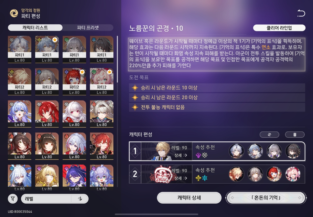 [게임 공략] 붕괴 스타레일 허구 이야기 12별 조합 (3.4버전)