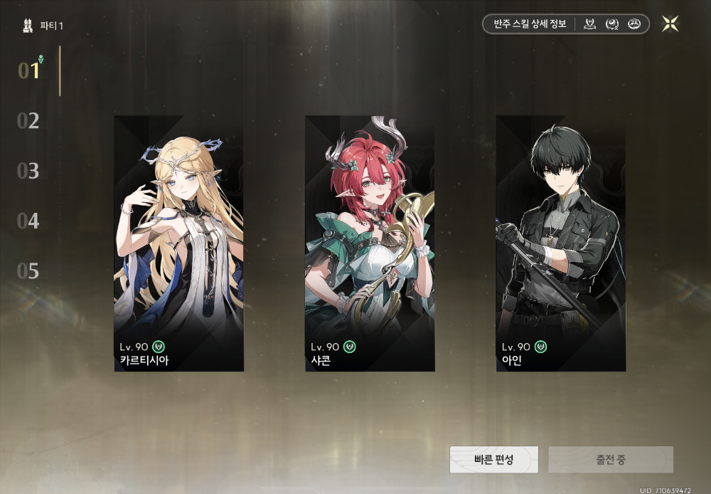 가장 기본 파티가 기류 방랑자, 산화 같이 배급 캐릭터이기 때문에 카르티시아만 잘 키워도 파티에 무리가 없습니다.
