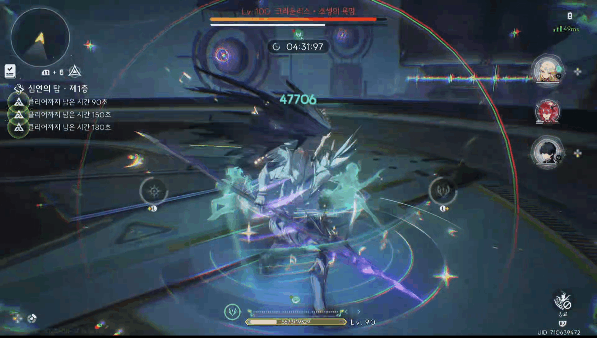 - 공명 스킬로 세 번째 검 활성화 후, 공중 공격 확인