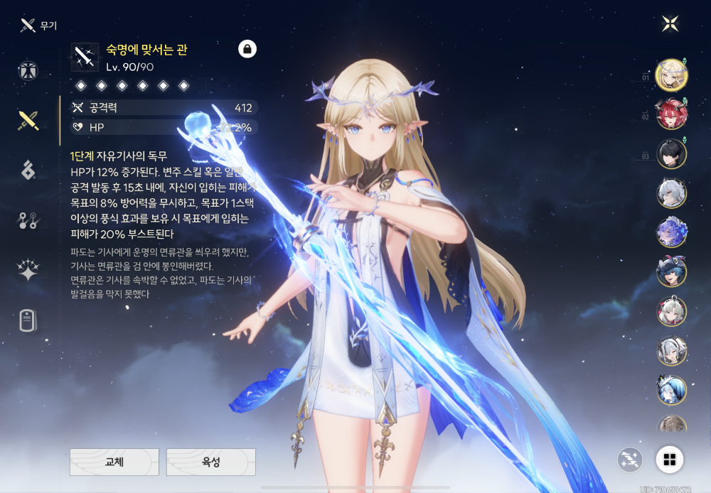 무기 같은 경우에는 전용 무기에 HP%가 정말 크게 붙어있기 때문에 있고 없고 차이가 정말 큽니다.