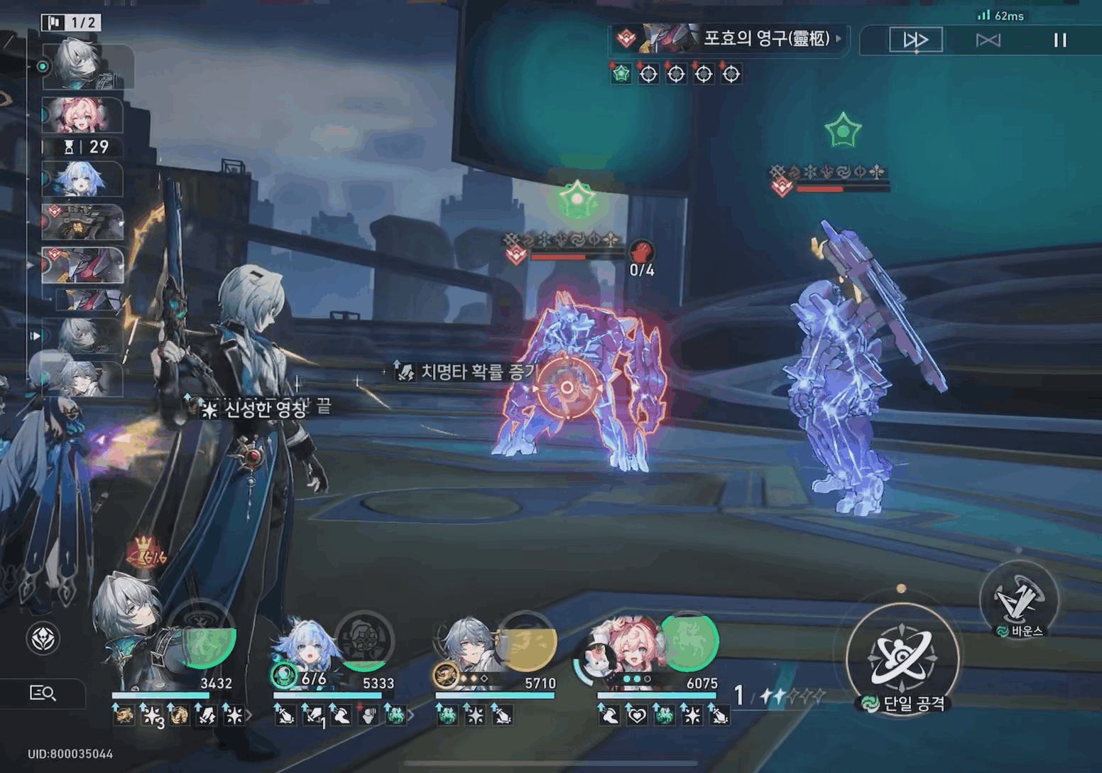이 때 첫 번째 전투 스킬은 치명타 피해, 속성 저항 관통 버프를 받아 더 강력하게 나갑니다!