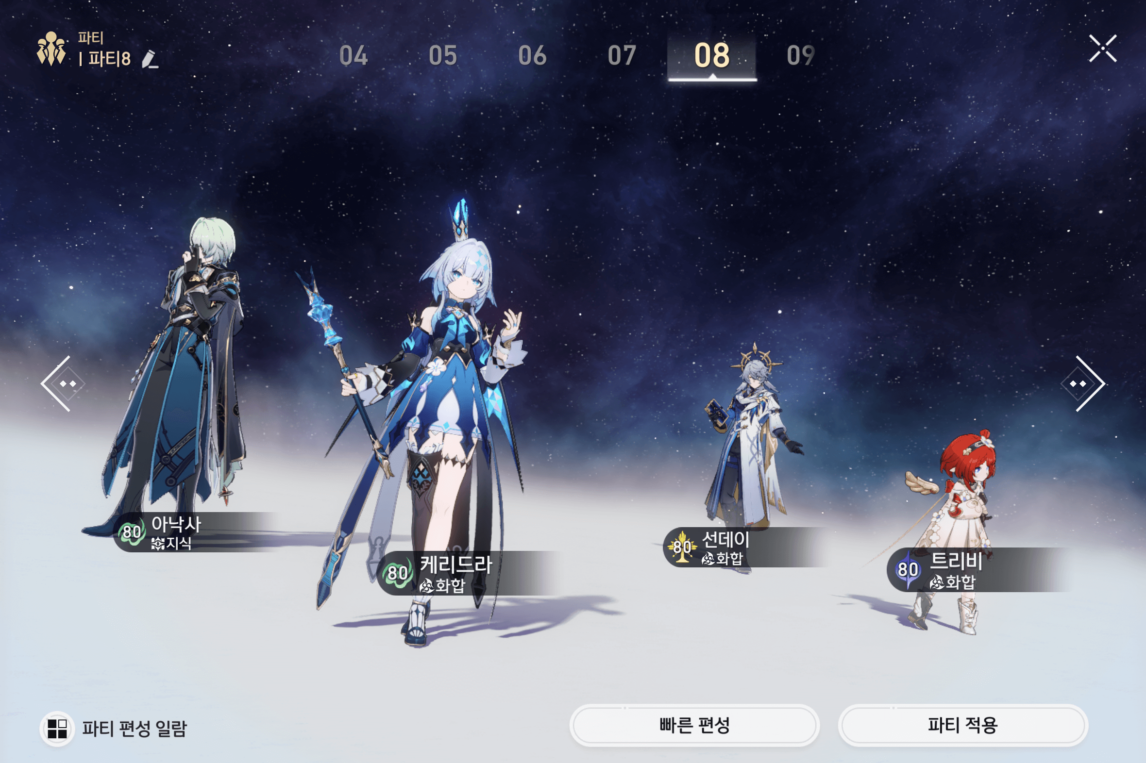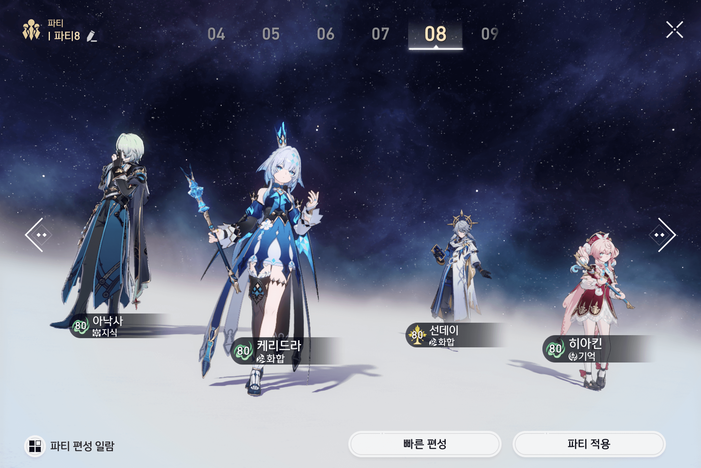 저는 주로 아낙사+케리드라+선데이/트리비+히아킨 조합으로 사용하고 있습니다!