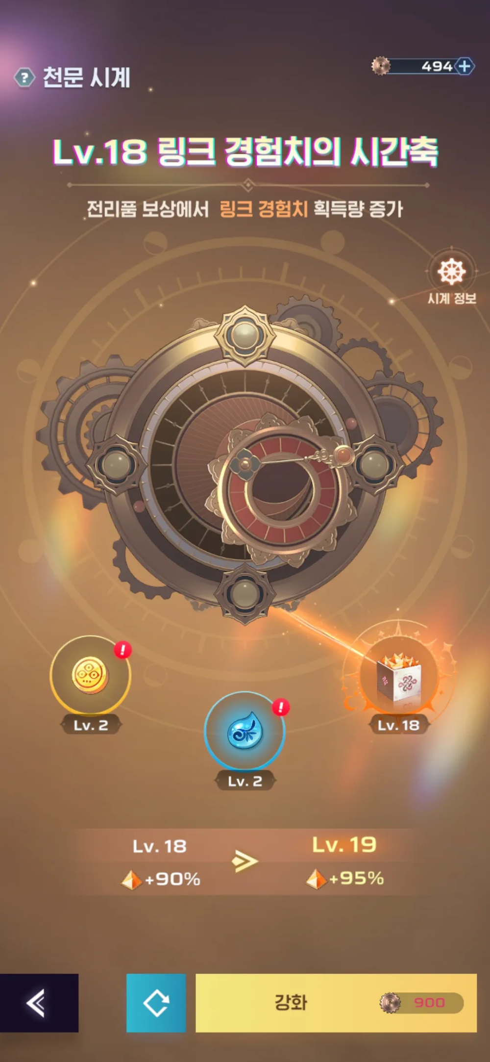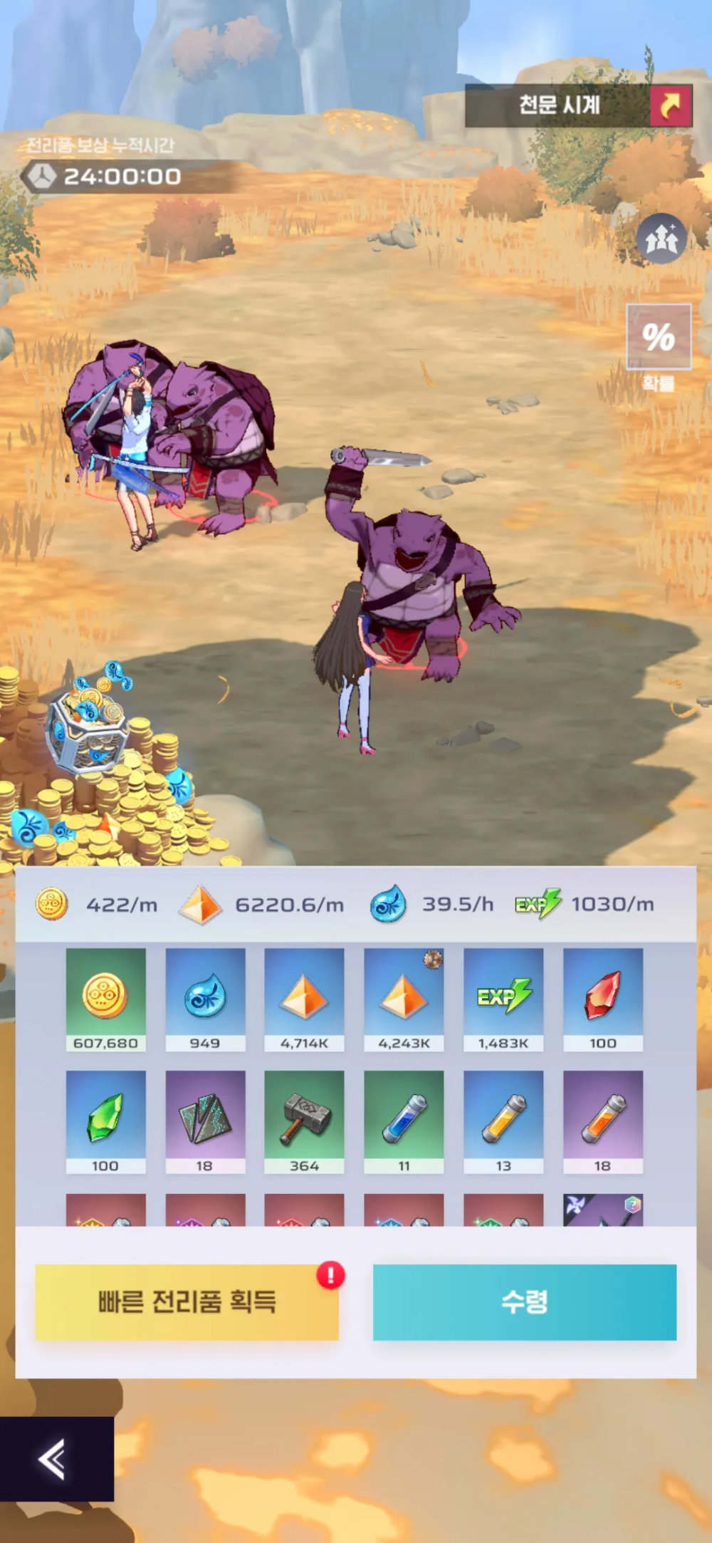 - 천문 시계 태엽 아이템을 통해 방치 보상을 증가하는 시스템