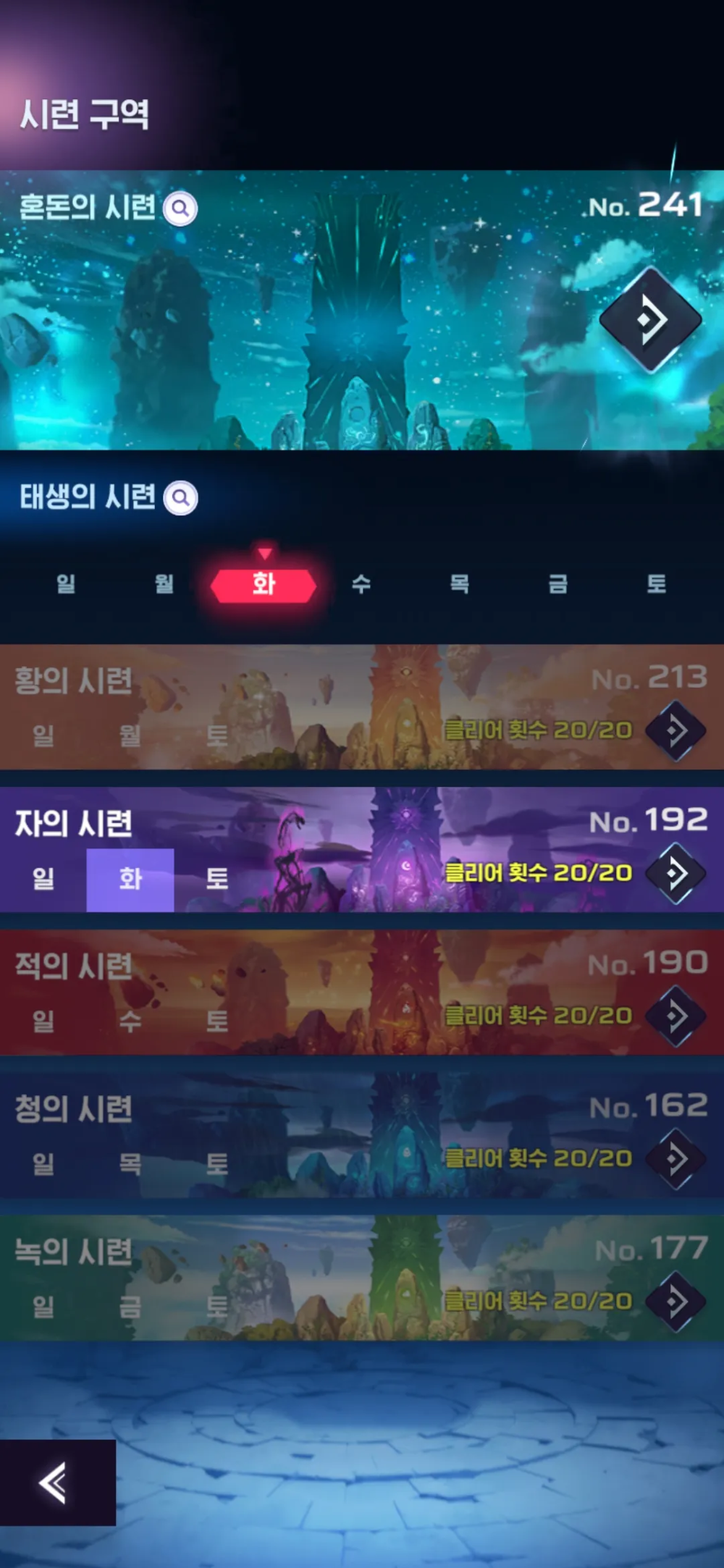 속성 별 도전 콘텐츠는 하루에 10번만 클리어 가능