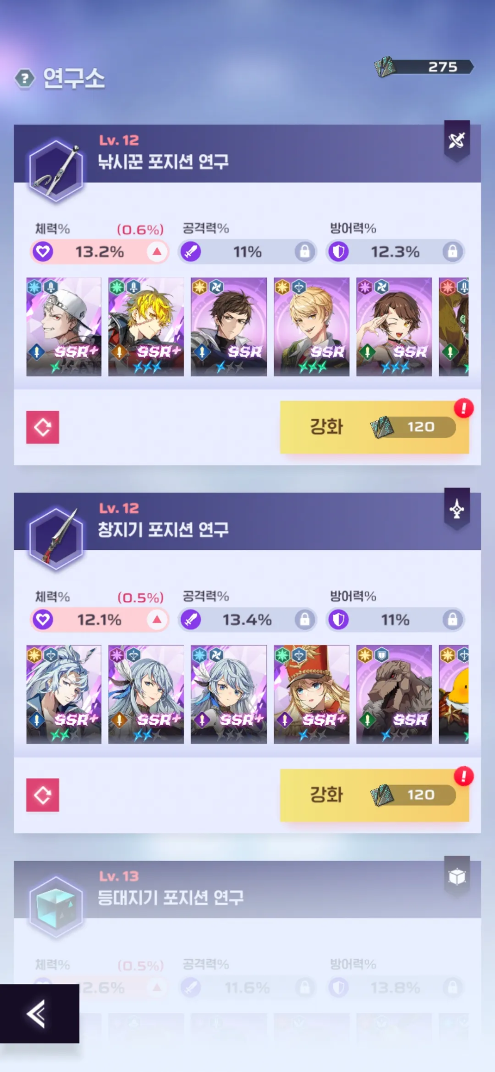 - 데이터 파편 아이템을 소모하여 각 포지션을 강화할 수 있으며, 강화 시 포지션 내 모든 캐릭터가 추가 스탯을 얻을 수 있음