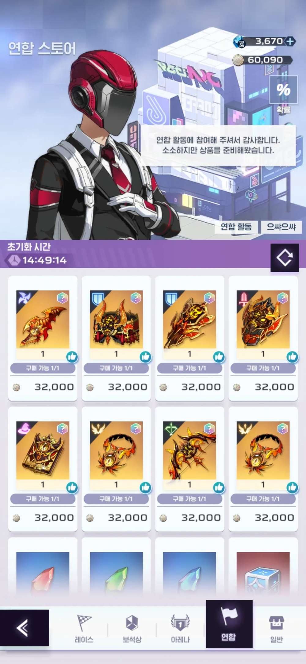 ○ 아레나 코인으로 살 수 있는 것들이 희귀하지 않은 편이라, 아레나를 하지 않는 유저들도 꽤 있었음
