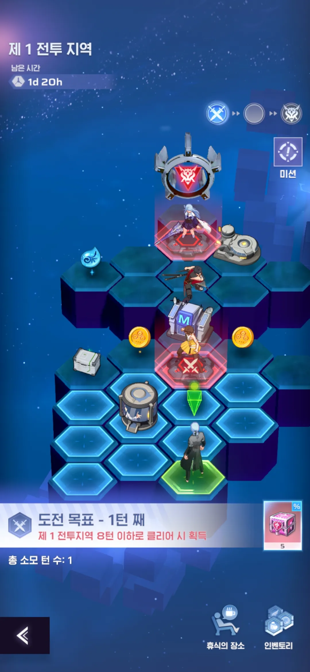 ※ 이후 업데이트를 통해 클리어만 해도 뽑기권을 주는 형식으로 변경 - 세번째 미션은 각 캐릭터의 속성 및 역할을 제한하는 미션이 대부분