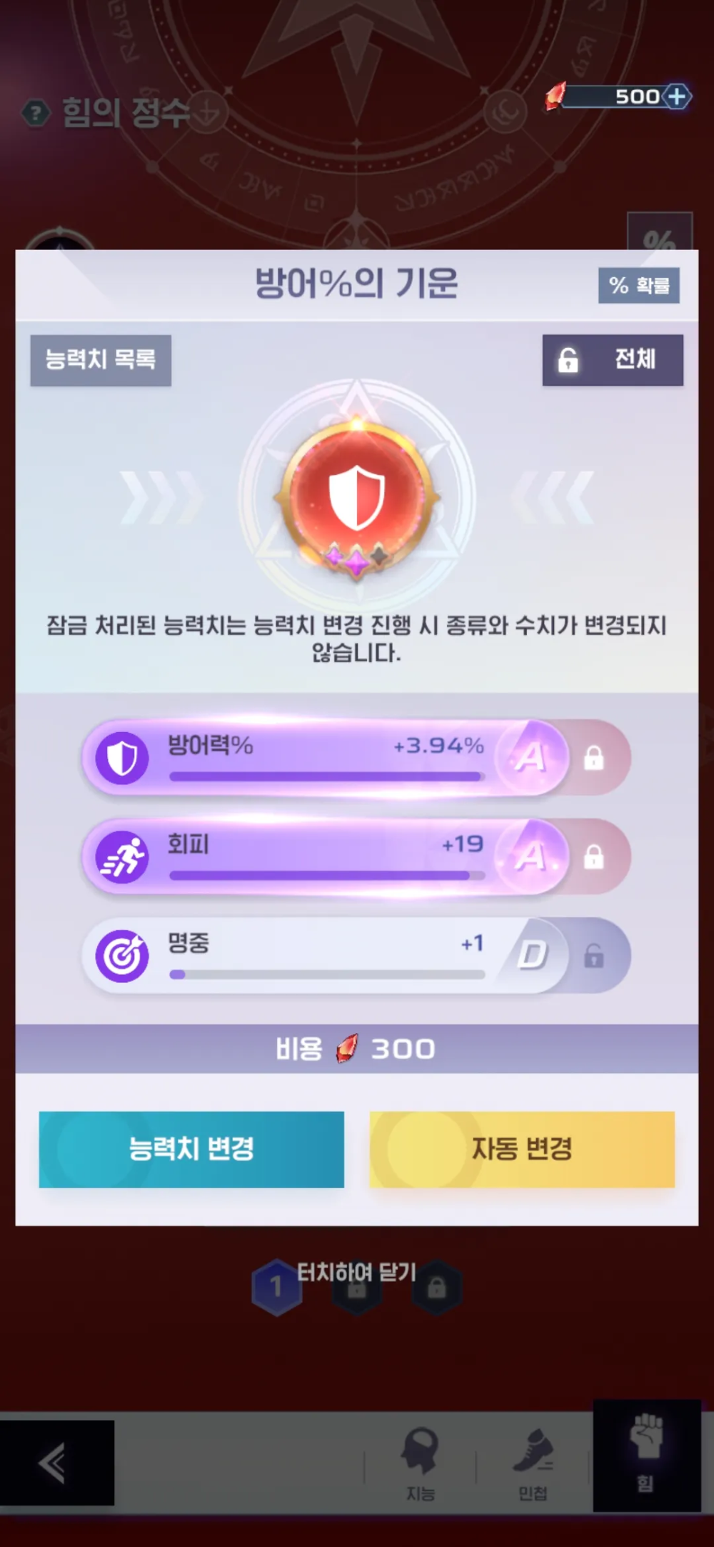 ○ 스탯은 3개 모두 랜덤으로 돌아가며, 특정 스탯을 잠글 수 있음