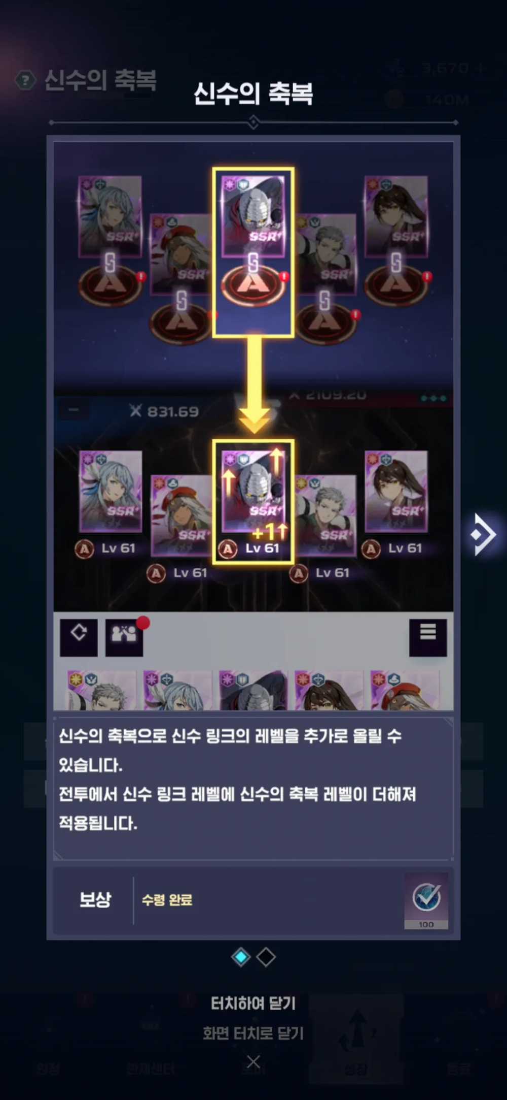 - 캐릭터 획득 및 육성 상태에 따라 인연의 등급이 올라가고, 그에 따른 추가 스탯 획득 가능