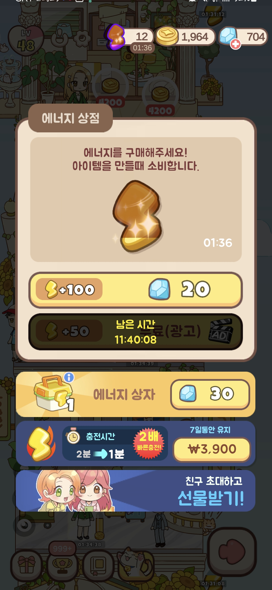 ○ 에너지 외에도 생성기 시간도 기다려야 하기 때문에 유저들에게 이중 기다림을 요구하는 것과 같음 - 현질 유도가 심한 편