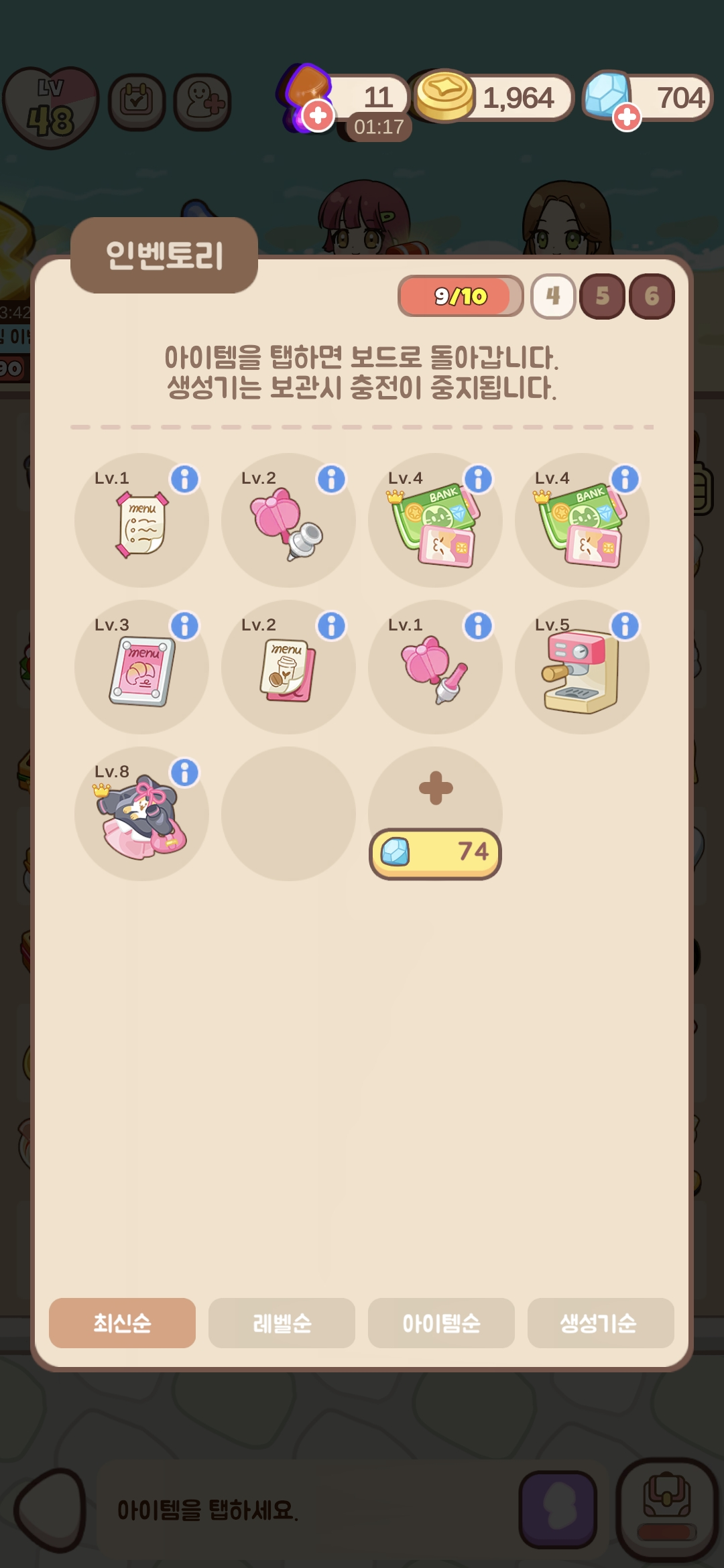 - 손님들이 요구하는 물건을 머지를 통해 생성하고 제출하여 골드를 획득